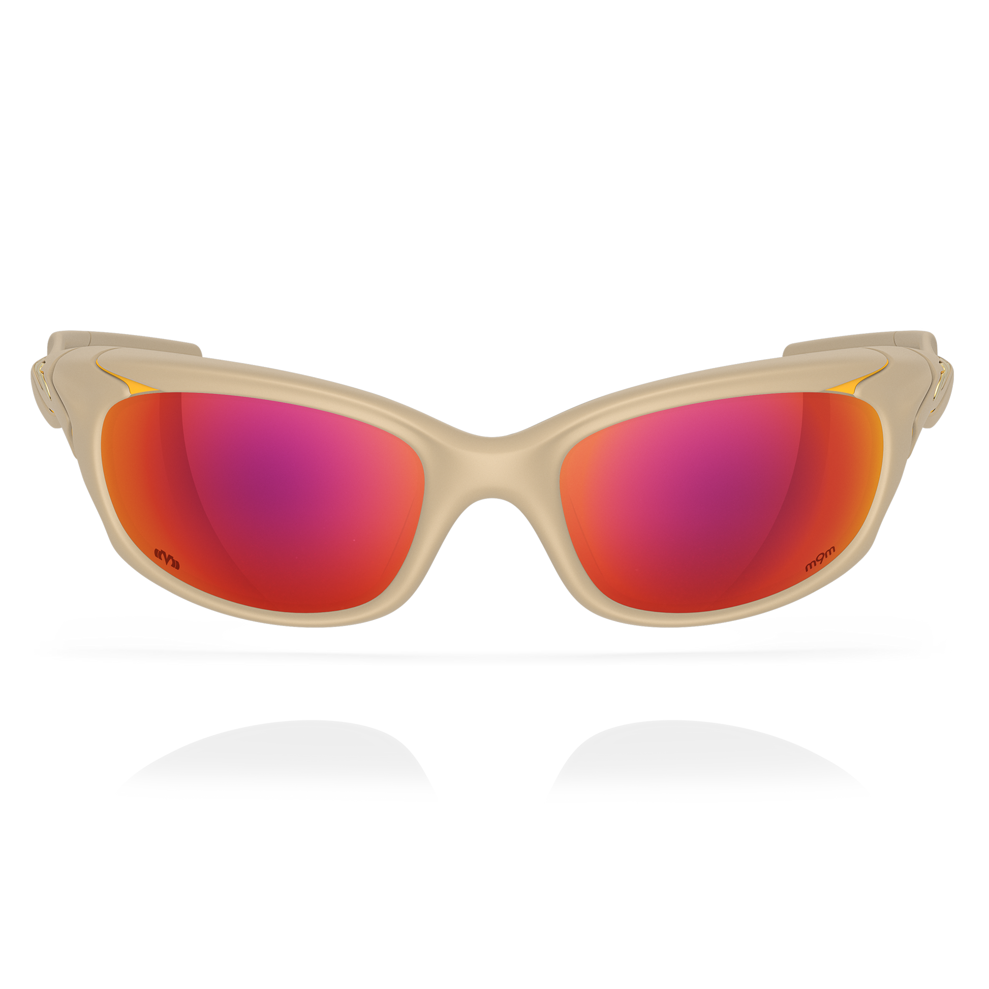 視線を奪う、大胆な「レッド&オレンジ」の多層膜ミラーコーティングを採用。